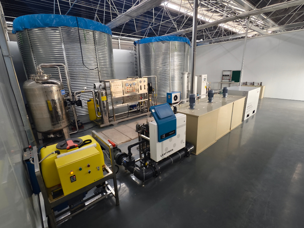 Irrigation and environmental control system: Automatically monitors and regulates the EC value, pH value, and temperature of nutrient solution, as well as the temperature, light, and humidity within the greenhouse.